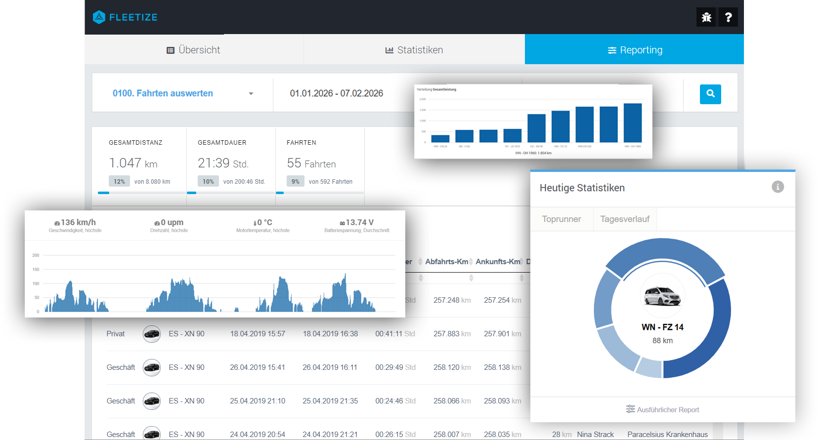Mit nur wenigen Klicks sind Sie so in der Lage, die Flotten-, Fahrzeug- und Fahrerauslastung zu individuellen Zeiträumen auszuwerten.